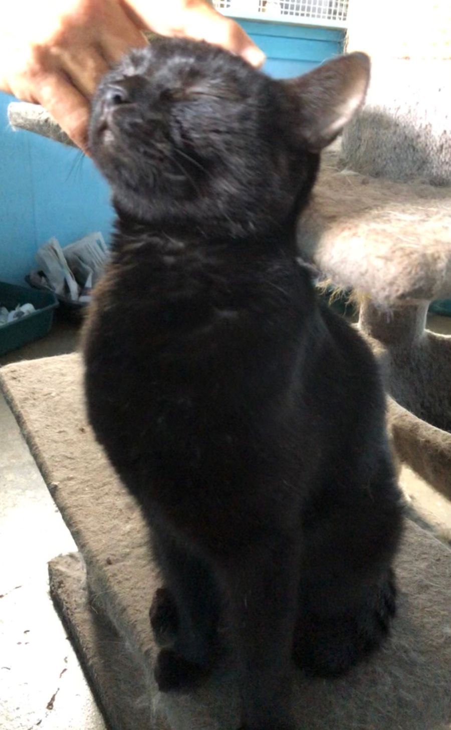 Sunny is a beautiful black cat that's looking for his forever home! He arrived at Happy Paws Haven due to his previous owner no longer being able to keep him. Despite the change in his life, Sunny remains a very laid-back and affectionate cat. He loves nothing more than receiving love and cuddles from humans - he'll even roll over onto his back so you can give him belly rubs! Sunny is an ideal companion for those looking for a relaxed and loving pet. His charming personality will make it easy to melt your heart, so come meet this hansom boy today!