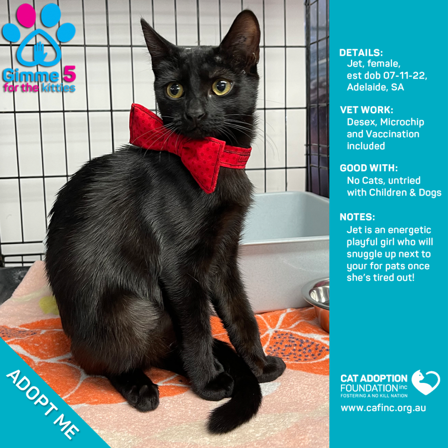 Donate to Jet Just $100 Limited Time! at Cat Adoption Foundation Incorporated via Shout