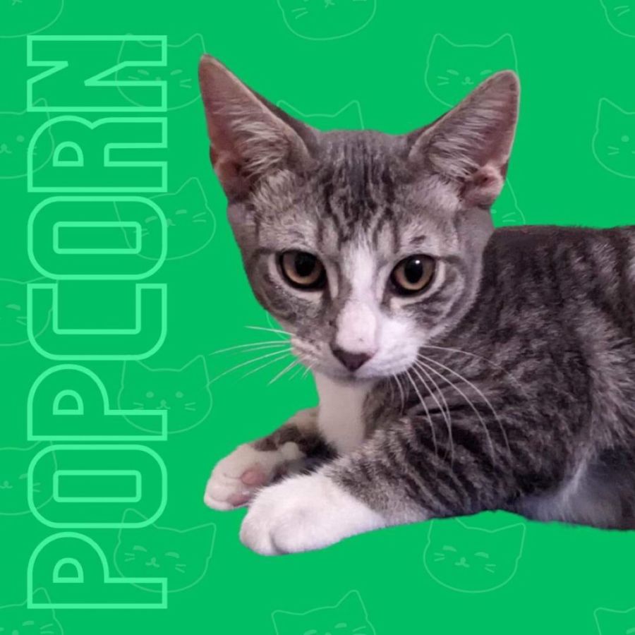 Popcorn is a gorgeous male kitten who was found wandering around Morayfield in January 2023. He is now living in a loving foster care home, where he has been settling in and getting used to the good life! Popcorn loves his food and cuddles, and enjoys play time with other cats.