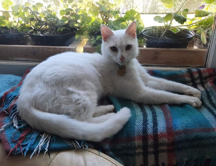 Zero's date of birth is 15 November 2020. He is pure white so really needs to be an inside cat to protect him from getting skin cancer. Zero is litter trained and is happy to be inside since coming into PARH Care.