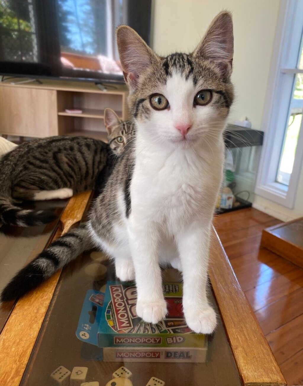 Looking for a smart and friendly kitten? Lily-Ann is the one for you. A pretty white and tabby, she will charm you with her good looks and her personality. She is a curious kitten and will sit and watch before investigating further, choosing to observe first rather than dive in.