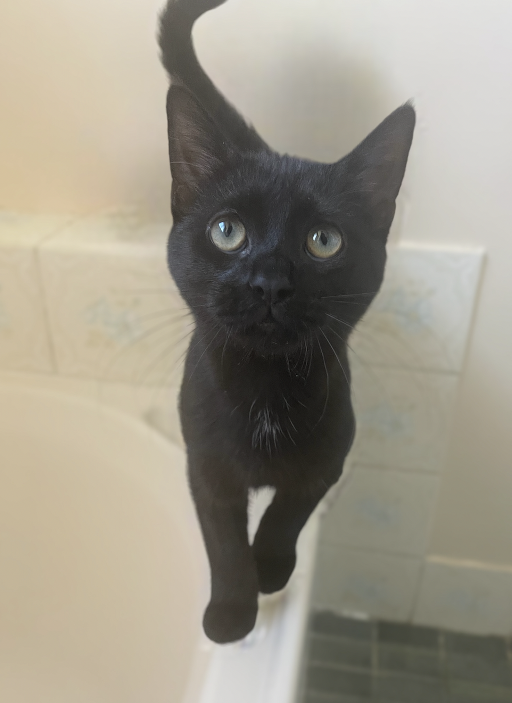 With his sleek black fur and serious gaze upon his face, Hissington the 3rd of Meow Castle exudes nobility and confidence. He assumes that as king of the castle he will of course sleep on the biggest bed in the house, where he can be found snuggled up at the foot end purring both day and night. Hissington was given his title due to his confidence and he shines through as a big mighty leader!