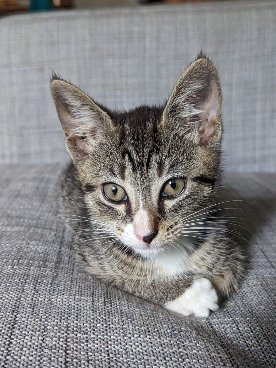 While Minty would probably be fine as an only cat, she’d prefer to be adopted with her brother or another friendly kitten to play with.