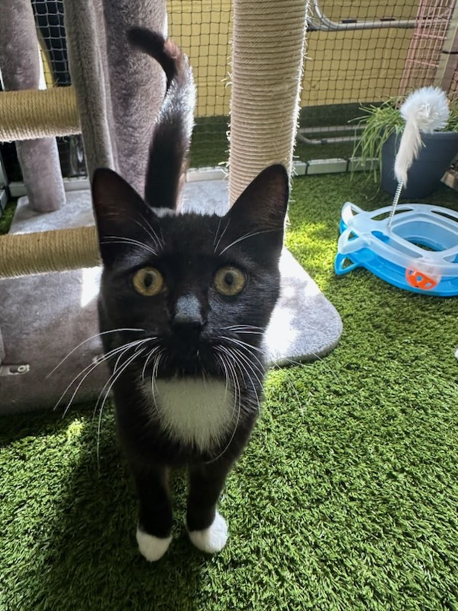 Garfield is a playful, active and social female cat who loves to explore. She is already litter trained and is an all-round delight to have around. Garfield loves to cuddle up with her owners, or curl up in the sun for a nap. She also enjoys playing with toys, chasing after shadows and exploring new spaces. Garfield is confident enough to go off on her own for a little while, but loves having people around her that she can trust and bond with. With her vibrant personality and love of adventure, she would make the perfect companion!