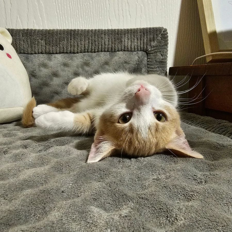 I'm a quiet, curious, and affectionate little darling who will let out a little trill when I see you before running over to say hello. As soon as I get your attention, I'll be purring loudly and happily. I simply adore cuddling up to you, whether that's sleeping on your lap or up on your shoulder - if it's with you, it suits me! I'm quite placid in general, though become rather courageous when I'm feeling playful! I love to play with all the cat toys, especially chasing the stick end of a cat wand and playing soccer with a pom pom from one end of the house to the other. I get along well with other cats, enjoying my social snuggles and play time. I'll use a vertical sisal cat scratcher but prefer a horizontal cardboard scratcher if I had to pick. My love language (aside from spending time with you!) is my dinner - I eat well, but am especially fond of my wet food as a treat! I'm also a big fan of staying hydrated and have been using the litter tray wonderfully. I'm truly an amazing, snuggly little lass who will make my forever family very happy.