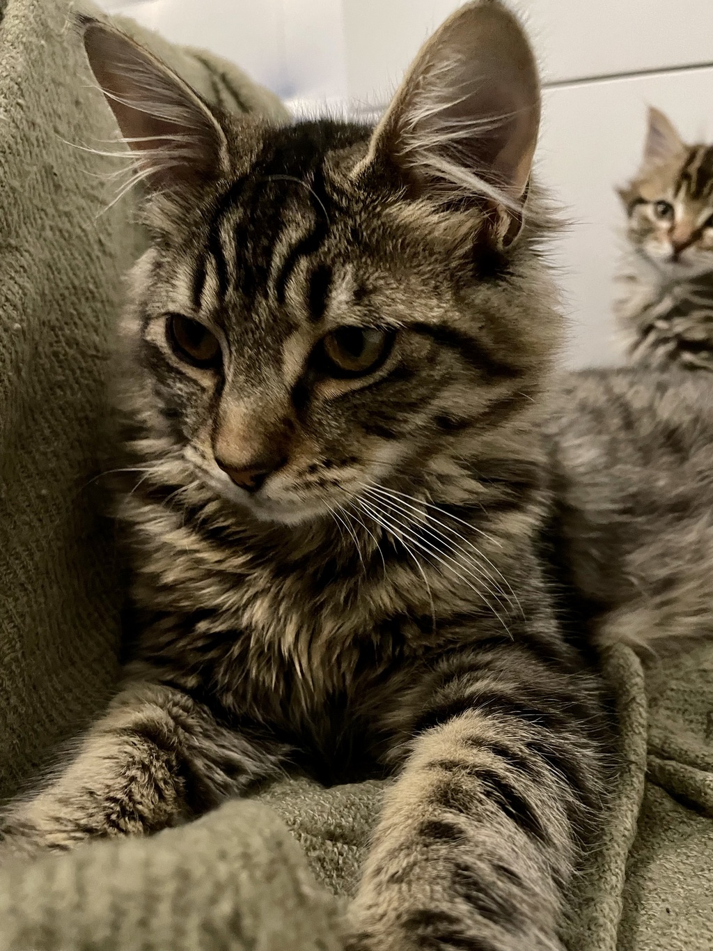 Do you have another furry friend? I'm ok with small dogs with slow introductions but the big doggos scare me. I love other kitties and so if you have another playful kitty around that would be awesome. I love to play chasies and another playful kitty would be great...and I do mean playful! I really do enjoy zoomies.