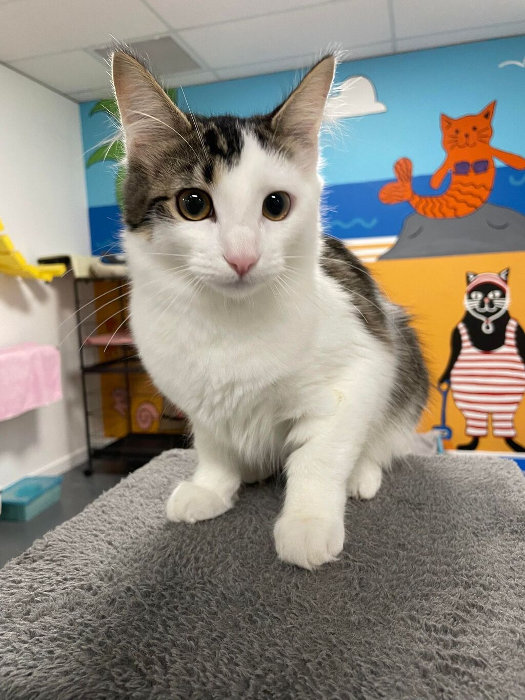 Rosa Diaz is a playful and affectionate little kitten with an insatiable curiosity. She loves exploring new places and meeting new people, and she's always up for a good chin scratch or cuddle session. With her bright eyes and endearing meows, Rosa is sure to bring a smile to the face of anyone she meets.