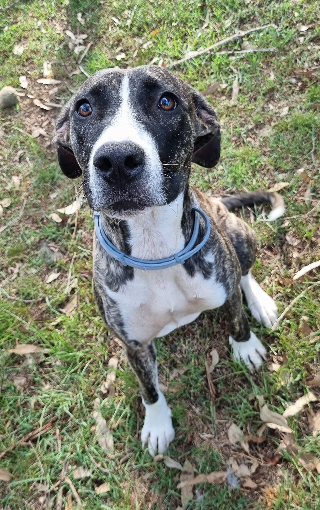 Kira is a sweet puppy who is still learning right from wrong. She is a bouncy bubbly girl who will most definitely benefit from some training. If a big goofball is what you are looking for then she is definitely the one for you. She will need plenty of room to run as she is going to be a big girl when she grows up.