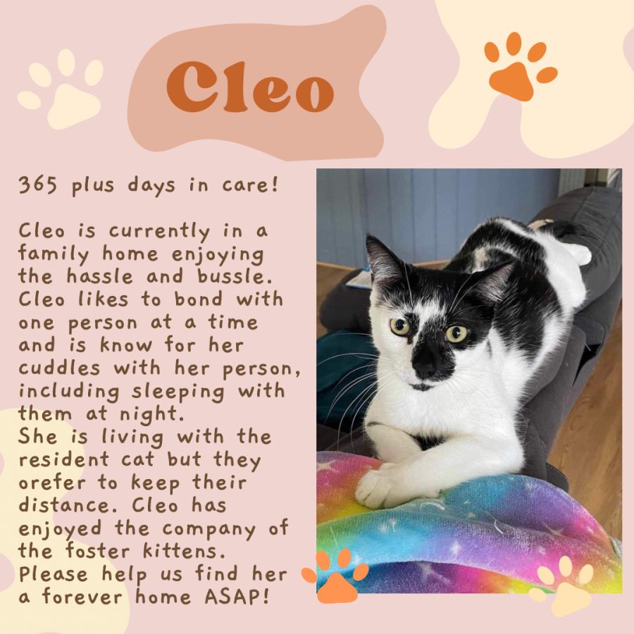 Cleo is a gorgeous loving girl who loves being with people and other cats. She is very friendly, playful and loves snuggling into your neck and nibbling your ears. Cleo has the loudest purr and is very curious wanting to know everything you do. She follows everyone around to find out who is doing the most exciting activities. Cleo loves helping with the washing and loading the dishes and especially loves meal time. You will not be disappointed with this gorgeous girl. She can be a bit shy when first meeting you but once knows you will smother you in love.