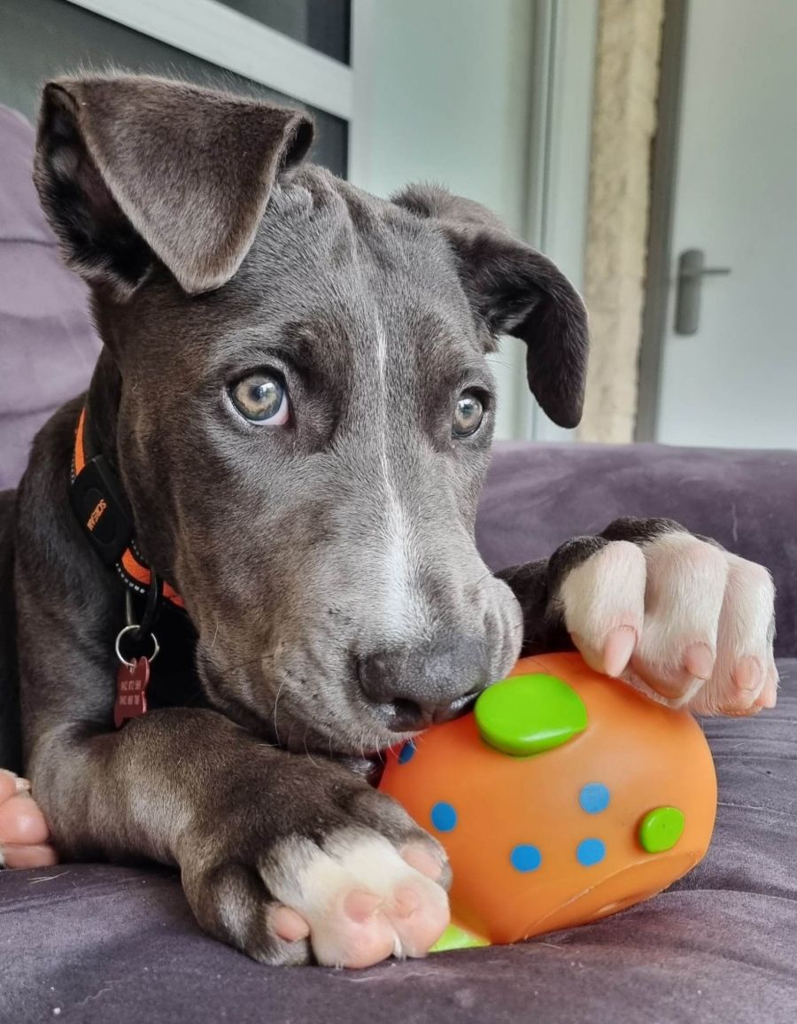 This little girl is super smart and picks things up quickly. She enjoys training activities and is food motivated. Mouse has already mastered sit and is working on her stay/wait and lead manners. It is important that her new owners are committed to continuing her training, particularly due to her expected size, so that she can become a well-mannered and easily managed adult dog. Mouse is currently crate training, travels well in the car and is progressing with her toilet training. Alongside her obedience training, Mouse will benefit from continued exposure to new places to continue to build her confidence when out and about in the big wide world.