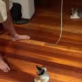 Roll around with the foster carer's own cat which ends in a mutual grooming session.
