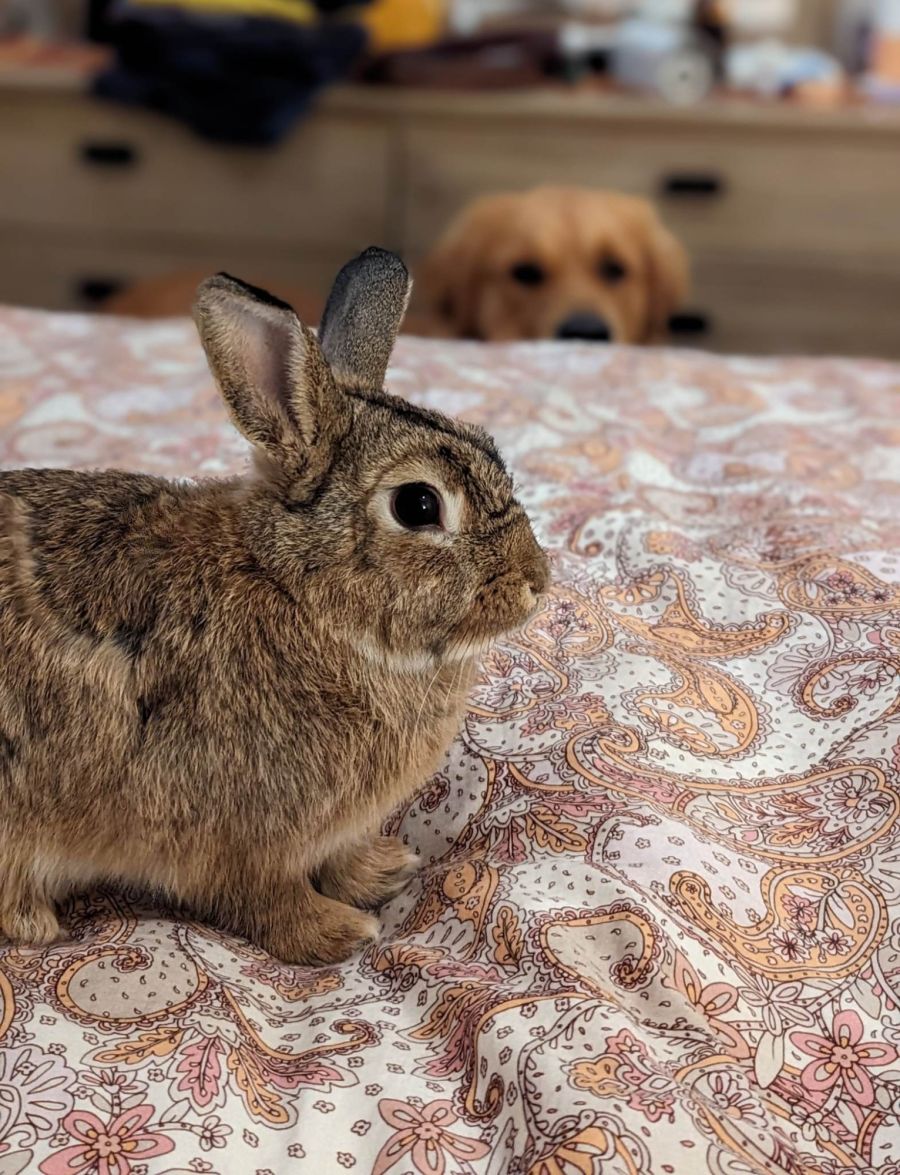 Roux is a gentle soul, and is very chill. She will get out of her pen, just sniff you immediately and make friends.