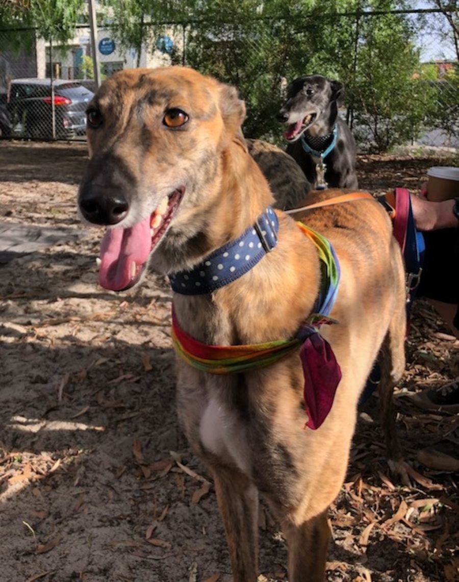 Warm up your patting hands and make sure your toy box is full, because brindle beauty Brindi is ready to find her forever family! Our brown-eyed girl has mountains of love and affection to share with her human and canine friends of all sizes. 3-year-old Brindi loves playing with her greyhound foster siblings, and is great with other dogs while out and about. She gets so excited to see her friends (including ones she doesn’t know yet, because everyone is Brindi’s friend, obviously) that she sometimes forgets to keep all four paws on the floor, but her foster family has been very helpful in reminding her not to jump up on strangers and visitors. Gumtree Greys can also offer training resources to help you and Brindi continue building polite habits through positive reinforcement.