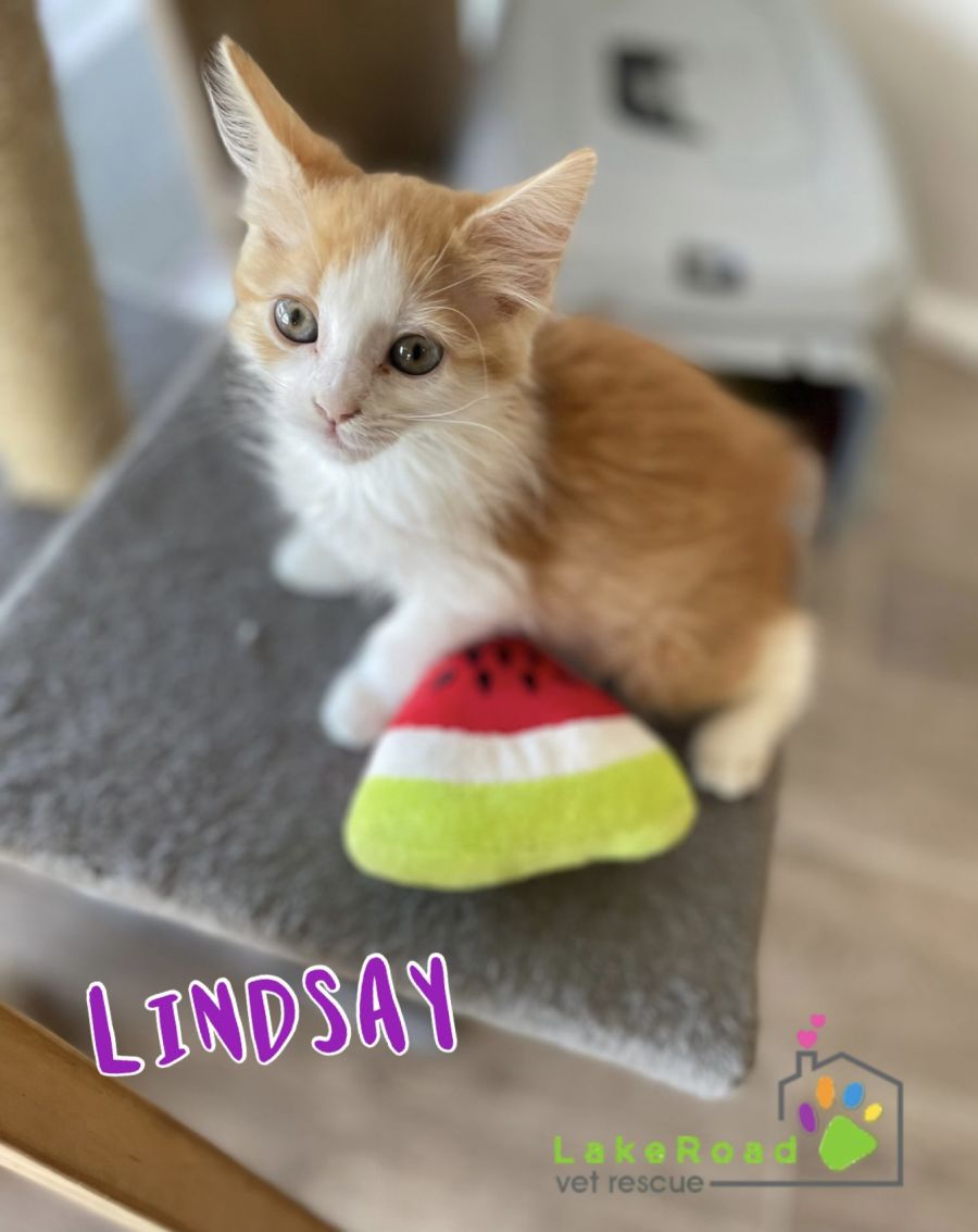 Sweetheart Lindsay came into care with her litter mates, who were all fairly malnourished and underweight. After lots of extra TLC, Lindsay is ready to find a new family to live with!