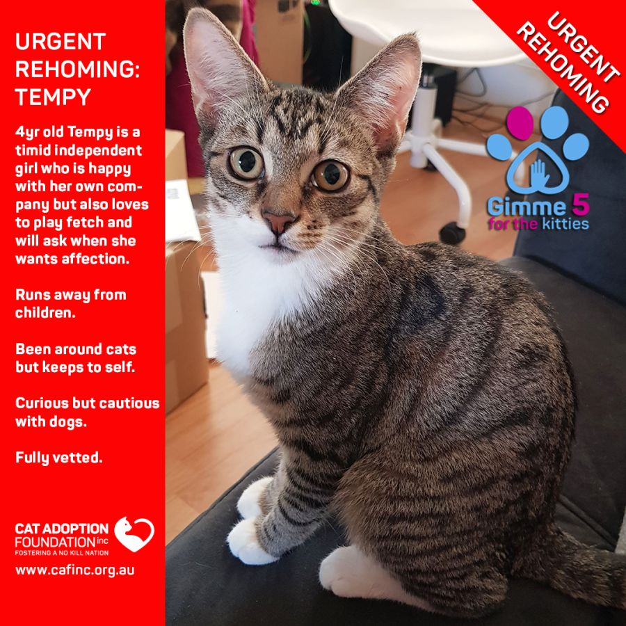 Donate to Tempy Private Rehoming No Charge! at Cat Adoption Foundation Incorporated via Shout