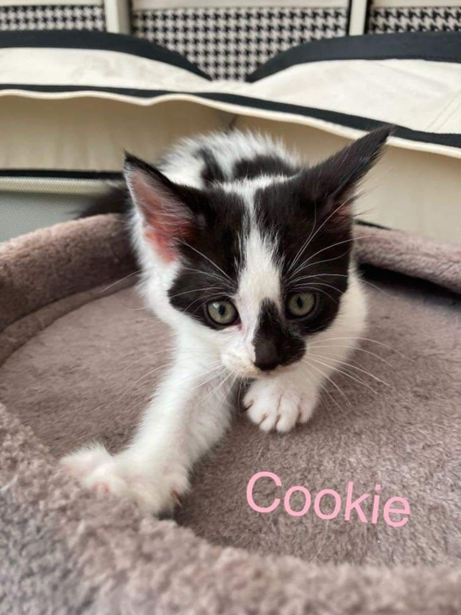 Cookie is super playful and likes to snuggle with her siblings. She loves to climb and be on top and watch the world around her. Cookie is absolutely beautiful and we love to watch her play.