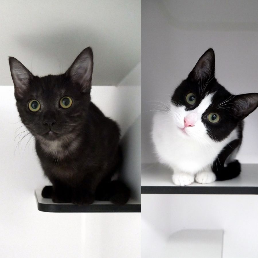 Christina (black smoke) and April (black & white) are bonded sister who love and rely on each other and must be adopted together.