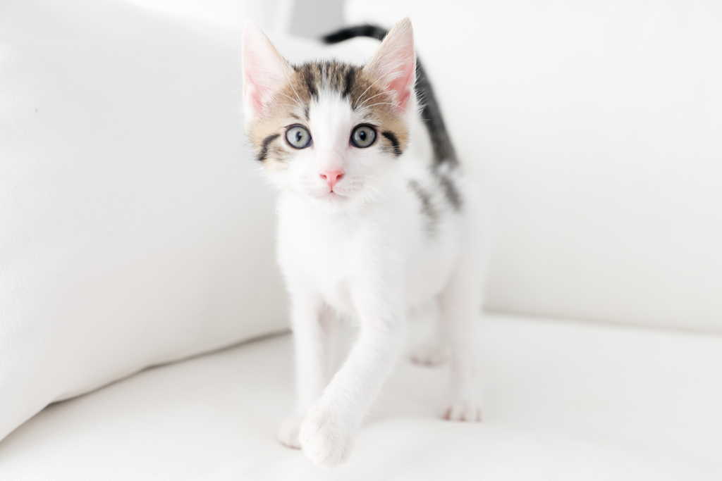Aries is such a delight, with the cutest striped tail on his little snow-white bottom. He would love a home with a family that wants to play and keep him entertained. He gets along well with the other cats in his foster home but is still unsure about the resident dog so he will need a slow and gentle introduction to a home with a dog.