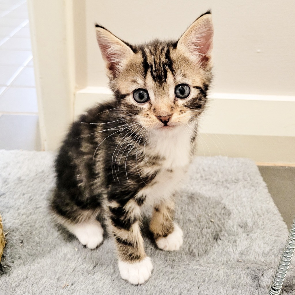 Hi! I'm Orchid, She's a show stopper! What a beauty! She's the smallest of three girls but she's the fiercest! She is very outgoing, loves to explore and LOVES climbing to the top of the scratching post, or any other structure she can climb! She plays rough with her other siblings but will yell out if they are too rough, only to jump right back in. She is full of personality, this one! She's fully toilet trained.