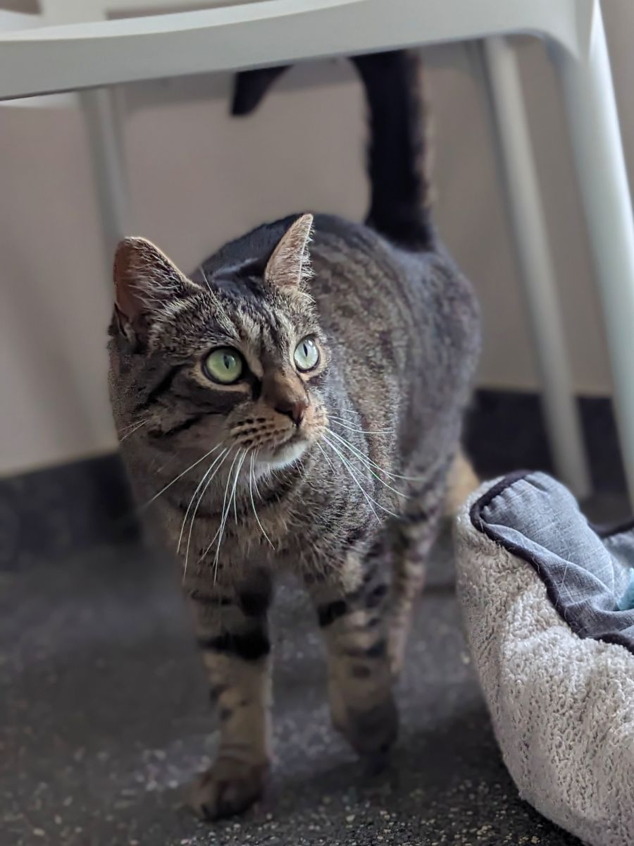 Coco is confident, quiet and very sweet, she loves to sit on your lap to receive chin scratches.