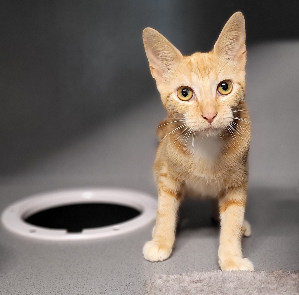 Hi i would like to introduce myself, I'm August! I'm a sweet little kitten looking to join a family of my own. I get along great with other cats and loooooooove to play with ping pong balls!!!! I can also be very snuggly, so I'm basically the best companion anyone can ask for!