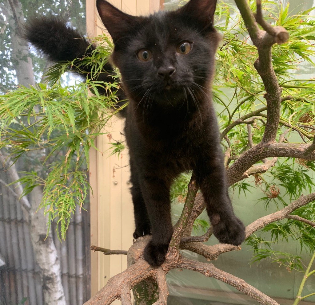 Nero has a big personality and energy to match! He loves to be involved in whatever is happening, and if it's a dull kind of day, Nero is up for making it exciting and entertaining. Whether it be chasing his sisters through the cat tunnel, playing with a ping pong ball, or trying to catch that red dot on the floor that doesn't stay still!