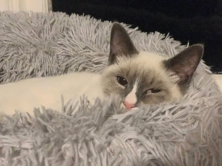 She is a seal point ragdoll, she is very affectionate and loves to cuddle. Most beautiful purr and just look at her eyes 😻 She adapts quickly with other cats and is very playful. Weary of dogs to begin with and now plays and sleeps with a dog and older cat. Oh and human if u can fit in the bed 😂