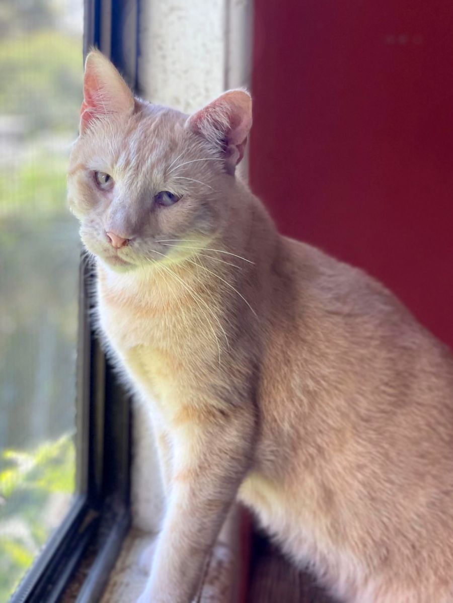 He is now just over a year old, full of charm, personality and overflowing with confidence. He is friendly towards other cats but honestly seems to prefer the company of people. He is super chilled when he is receiving love.
