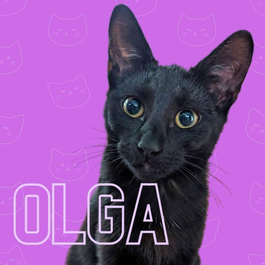 Olga is a short-haired black female kitten who loves to have fun. She gets along with both children and adults, making her the perfect pet for any family. Although she has not been tested around cat-friendly dogs, she gets along great with other cats. Olga loves to cuddle and would be a beautiful lap cat, but she also enjoys playing with her toys and lounging in the sun too!