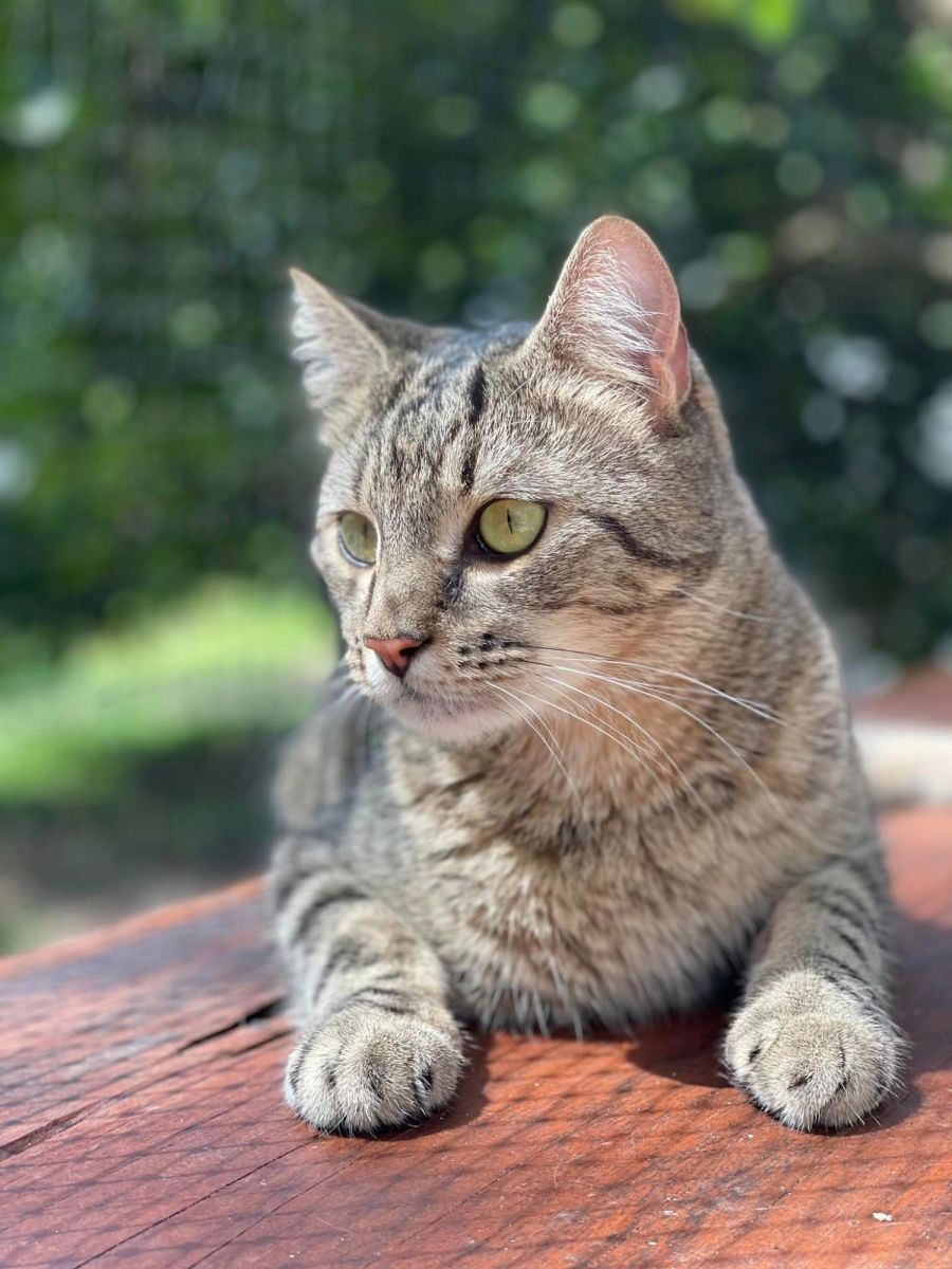 I came to Silver Lining after a freak outside accident caused me to lose my back leg. I'm proud to say that I have recovered brilliantly and am getting around on 3 legs like I never knew the difference. When I first came into care I still yearned for the great outdoors and was quite vocal about it. However, I have settled and come to enjoy the peaceful (and safe) indoor life.