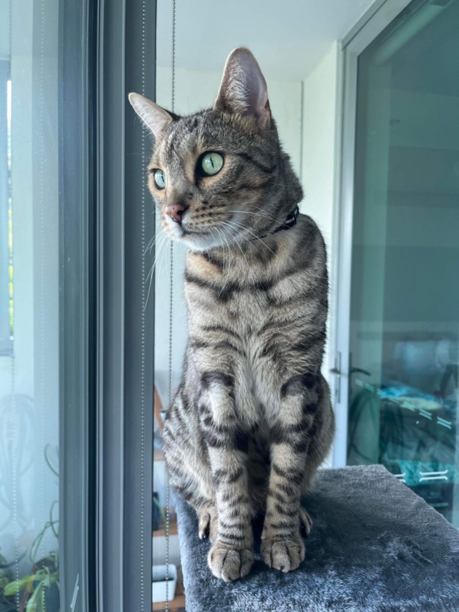 He’s not a lap cat but he loves to rub himself against people to show his affection. He gets disgruntled when his stimulation routine is disrupted but he’s not super food motivated so doesn’t really mind if we are a little late for feeding time.