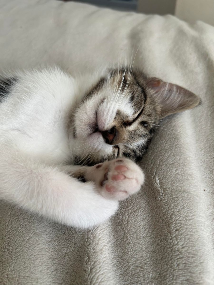 Dobby is the sweetest little man you'll ever meet! Once he trusts you, he loves to show his affection through meowing and cuddling. His favorite thing in the world is getting belly rubs - he will never turn them down. He's very sociable so a house with other cats would be ideal for him as he always needs a snuggle buddy.