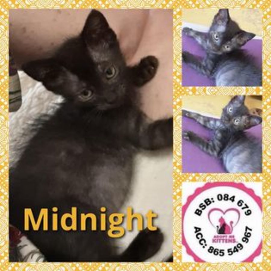Midnight had a rough start in life & has come along in leaps 'n bounds. He's a real cuddler and loves to sleep on the bed with you and help you read your book. He's a purr machine, loves playing and being tickled. Take a closer look and you'll see his unique markings with a beautiful silver grey coming through his fur. Midnight, would be great with other cats, suit a family and a little boy.