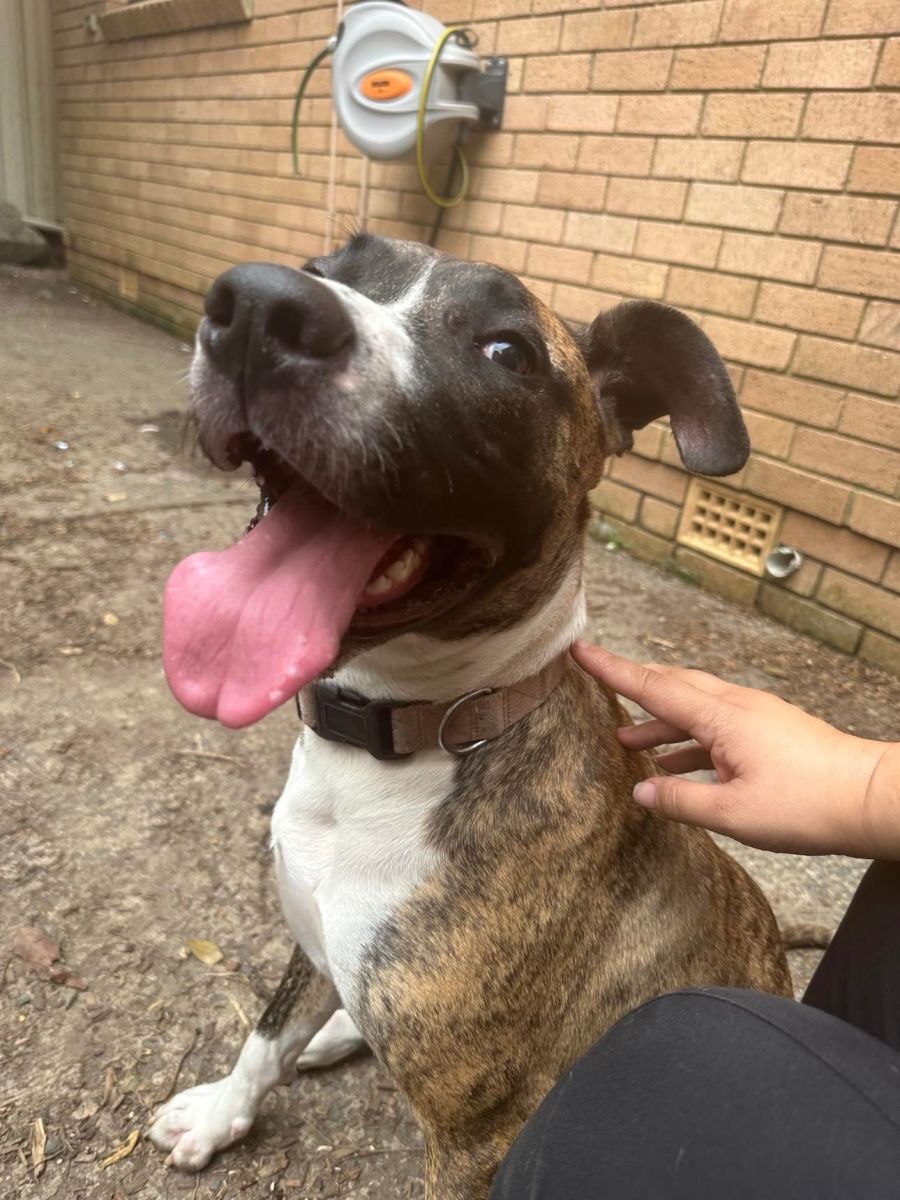 I’m a 2 year old staffy x boxer that loves walks, playtime, pats, scratches, kisses and cuddles.