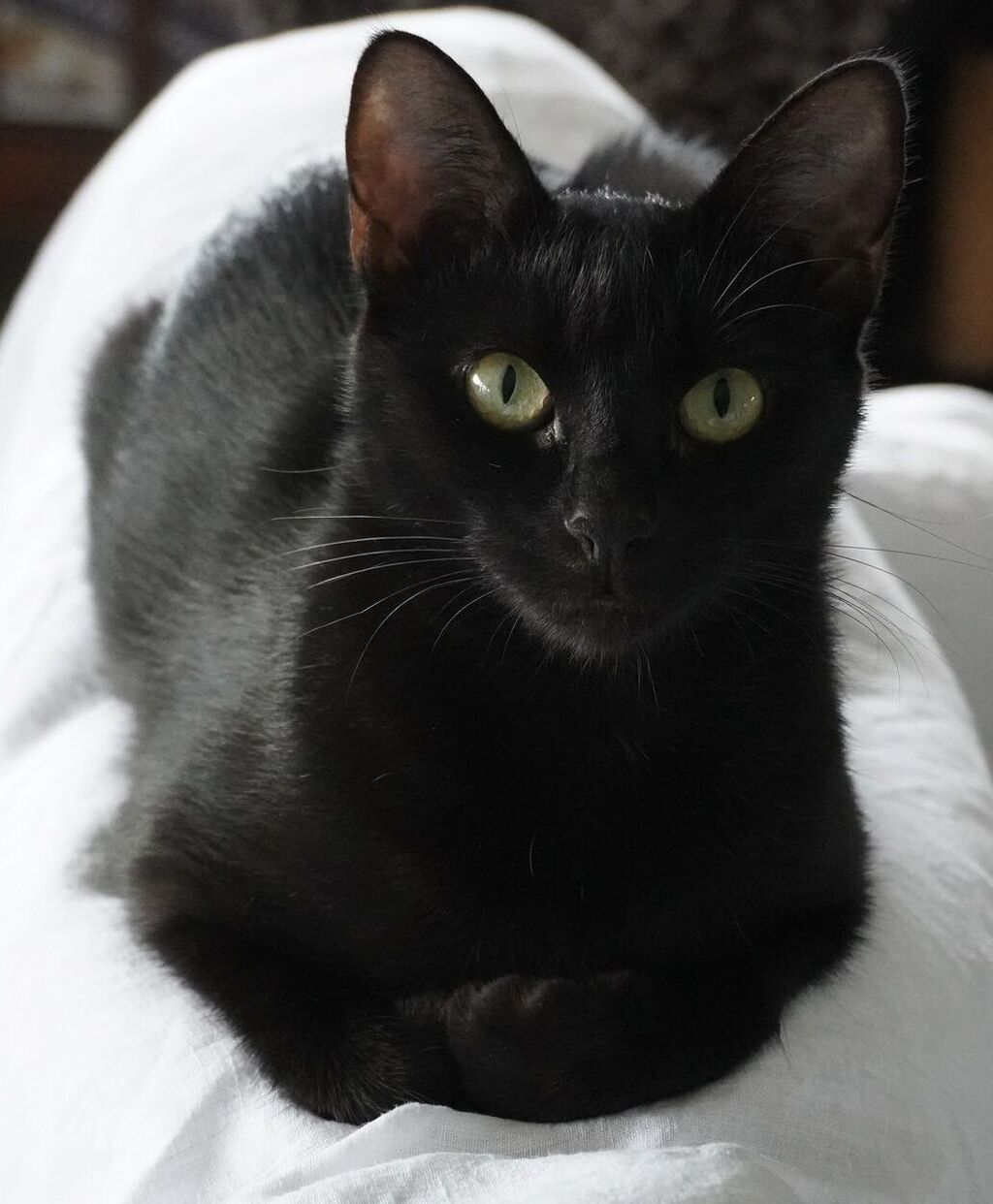 Miss Silky is a stylish girl with a glossy black coat and dreamy, sea green eyes.
