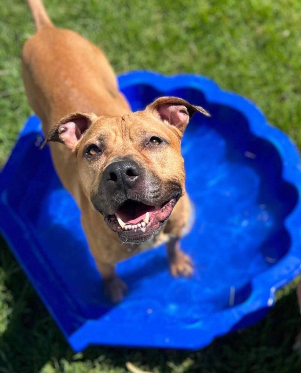 Maisie loves playing with toys and has already learned some basic commands like "sit" and "shake". She walks beautifully on her harness and lead, but loves a backyard zoomie! You'll find her laying in her shell pool on warm days or bathing in the sun.