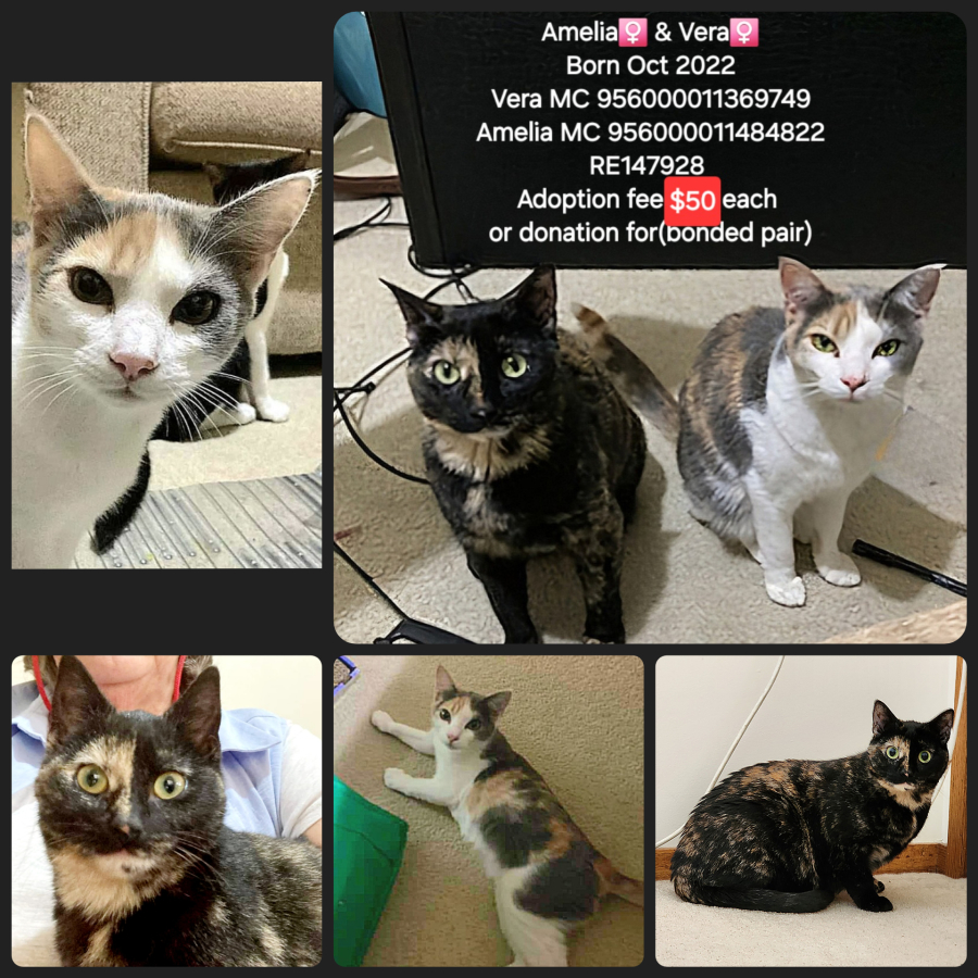Vera also has a desperate need to be with another cat. She would not cope with being an only cat, this would cause her great anxiety. Therefore Vera has been paired and has bonded with beautiful Calico Amelia.