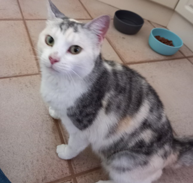 The first day was exciting, she could not wait to get out of the crate and explore her new house and to get to know her carers. When an older child came home from school, she kept her distance and observed for a bit but was soon in his lap for cuddles. Her past is unknown in terms of living with other cats or dogs. She listens calmly to dogs barking outside and continues with her mission to charm her foster family.