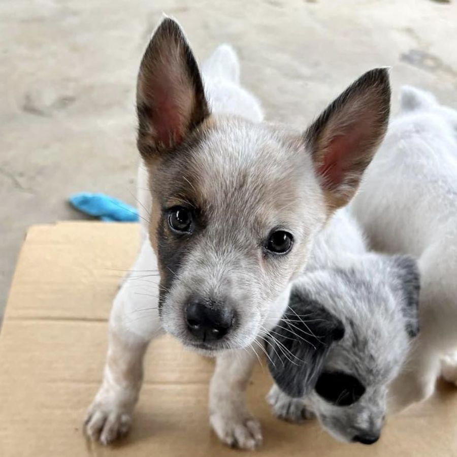The parents of this litter are apparently a cattle dog mixed breed on one side and a small mixed breed on the other. So new owners will need to be prepared for them to be larger small to medium sized dogs. Darby has longer legs and should end up more on the medium size; however, they are mixed breed pups after all so we can’t guarantee that. In terms of energy levels, Darby is currently showing to be more on the active side and is expected to require significant daily exercise and mental stimulation throughout his life. Like any working breed mix puppy, he will need ongoing training to ensure that he learns good doggie manners, and this will also meet some of his mental stimulation needs. Darby would be ideal to crate train and has already started - he actually demonstrates very good impulse control for his age.