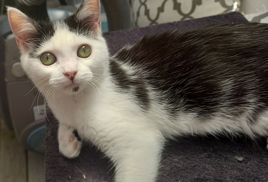She is absolutely adorable. She has a sweet loving nature and loves human contact, lap time is a must with her.