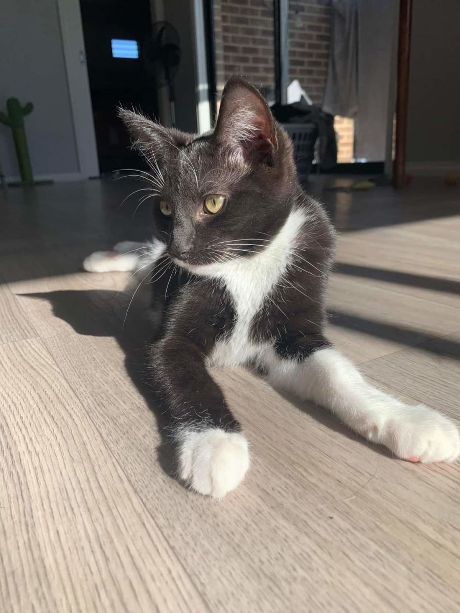 Tex came into foster care a very timid boy and he has come a long way! He lines up for pats now with his brother (also available for adoption) Tex is a very active kitten and he loves to play with his friends, he loves feather toys especially and will chase feather wands for ages!