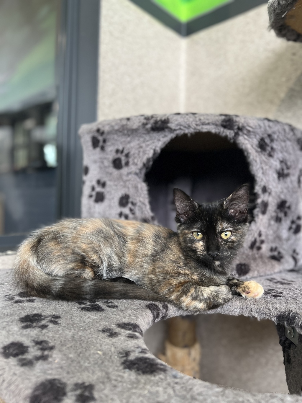 Abyss came to our shelter cold and wet as a teeny tiny kitten alongside her siblings. Our vet clinic and then foster carers nursed this litter of kittens back to health where they were provided with love and care as they grew big and strong.