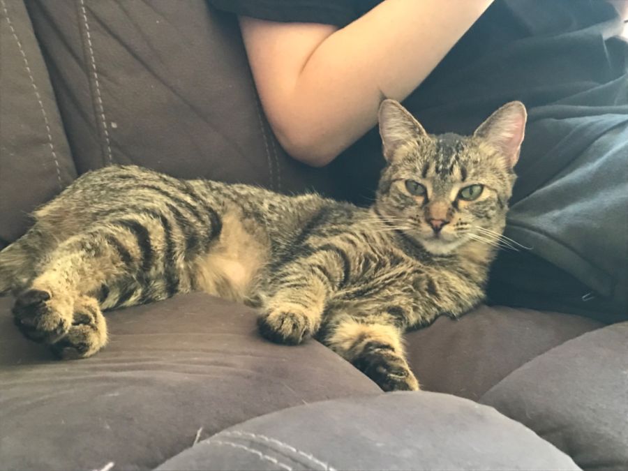 Our darling baby is ready for her new home, she loves rough play with other cats and being carried around over the shoulder of the kids in her foster home.