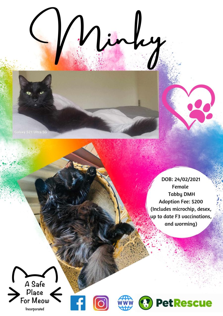 Minky came to us with her two babies. They have found their furever homes - why hasn't this mumma found hers yet?!?! At 3.5yrs old now; she is a very chilled out lady, who loves her doggo friends. She loves a head scratch and adores sleeping in bed with you. Once she gets to know you - you will have a fluffy friend for life!