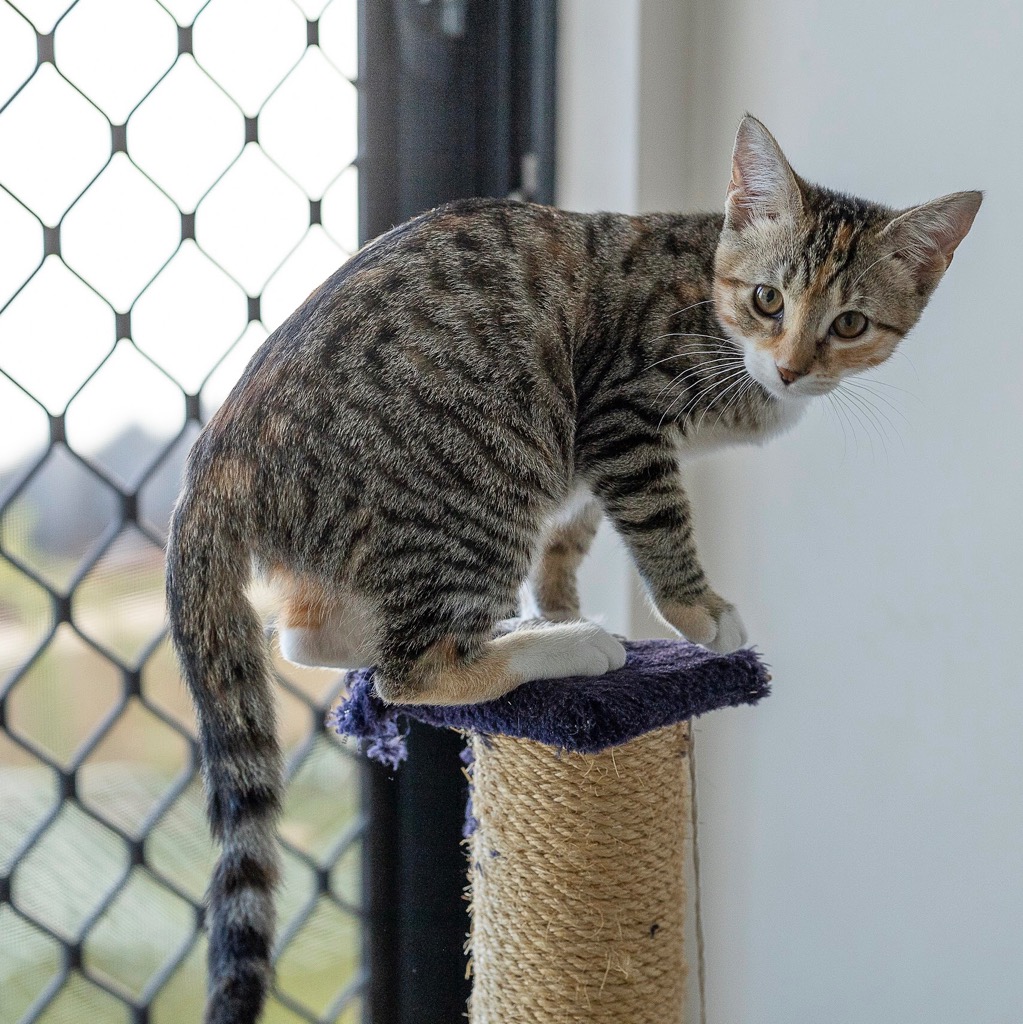 Babs, the adorable little lioness who tries hard to roar but can only manage a squeak! She's an observer, always paying attention to her surroundings, fellow kittens and humans. She's a skilled athlete with ball skills to rival Sam Kerr! She doesn't require expensive cat toys, give her a piece of cardboard or a rolled up ball of foil and she is entertained for days.