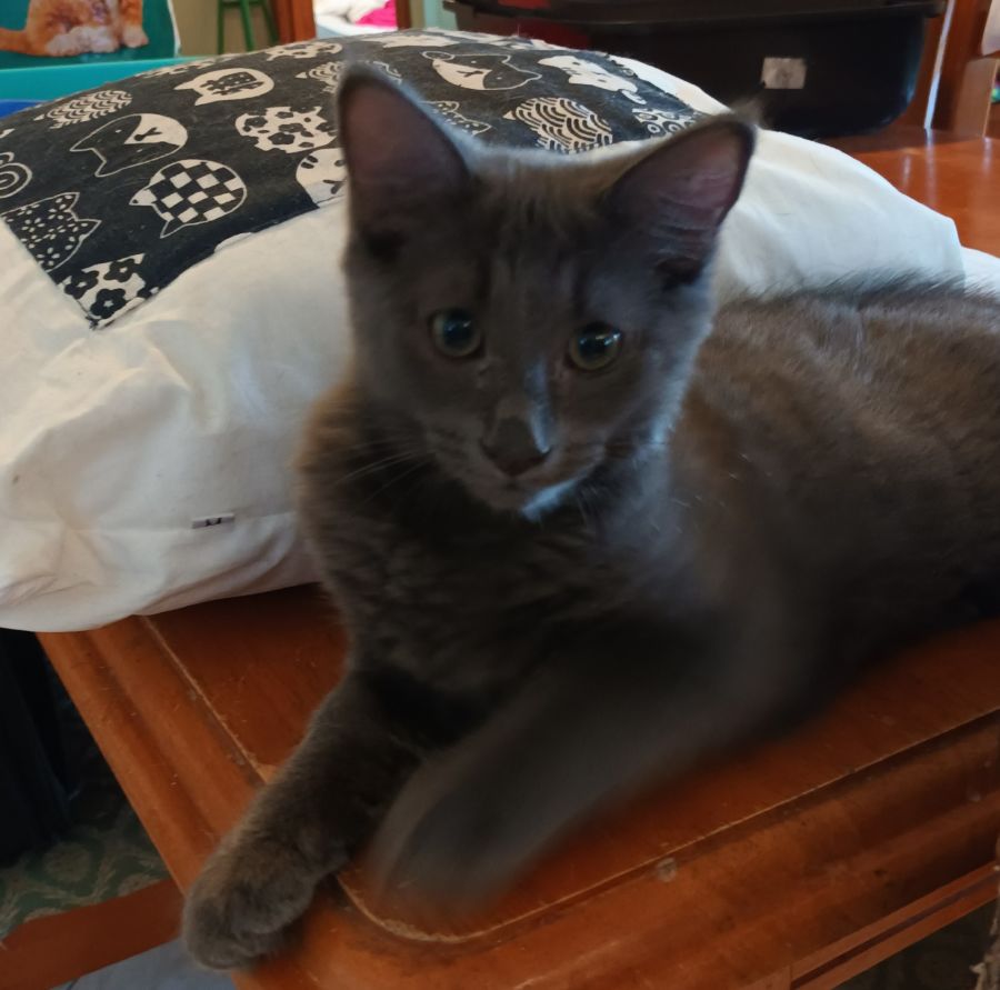 He is a happy playful little fellow who starts to purr the moment you pick him up.