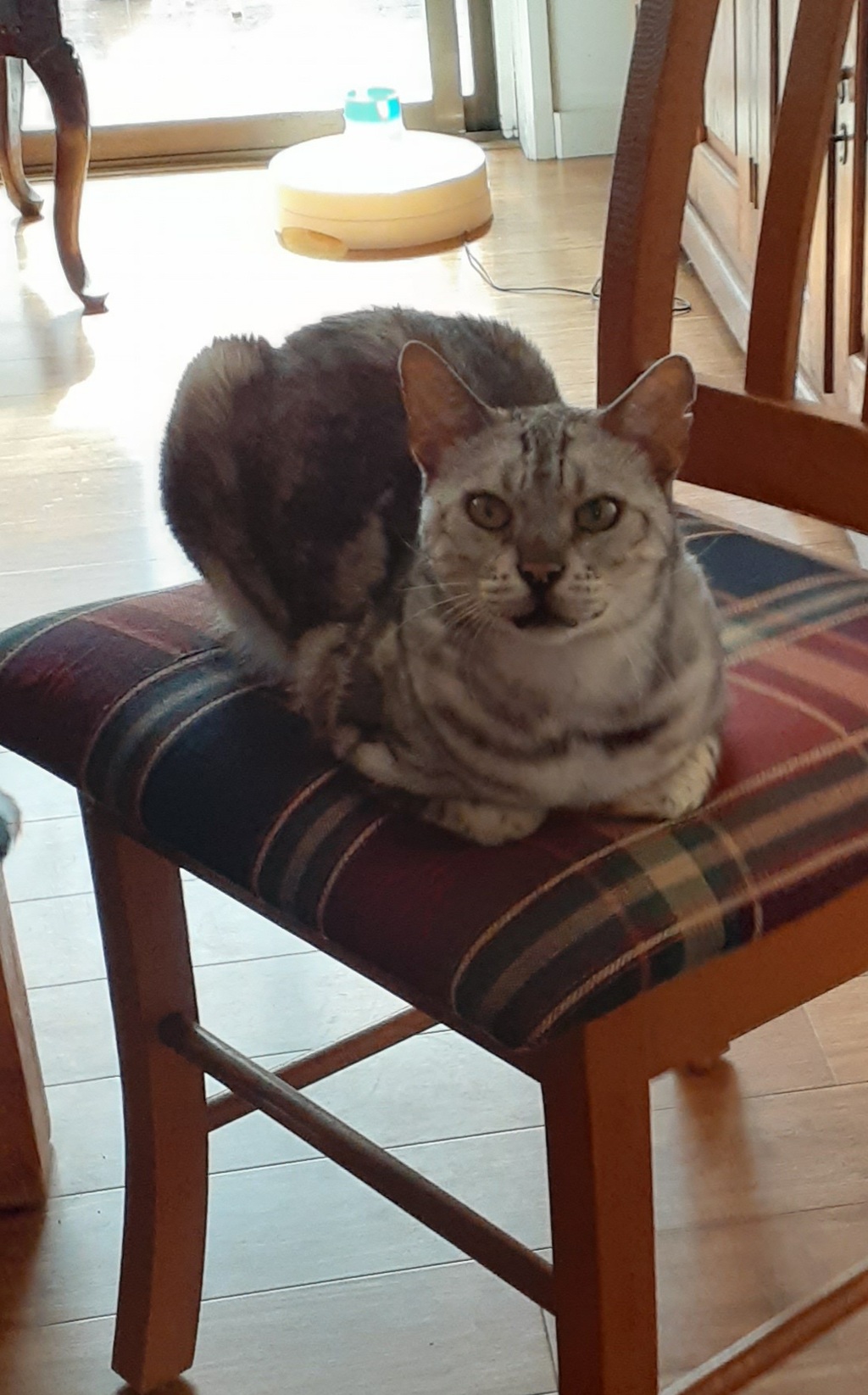 Billy is very affectionate and good with visitors. He will sit on your lap for a cuddle. He loves his cat tower, especially the hammock and has a fascination with ladders.