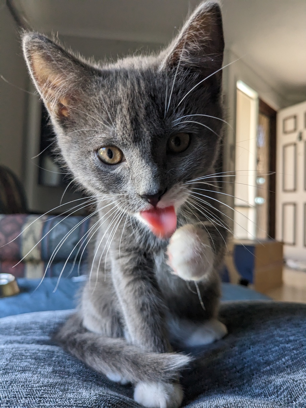 I would be best suited to a home with humans who can be both gentle and playful with me. I am content with my alone time, so a home without another pet would suit me just fine.