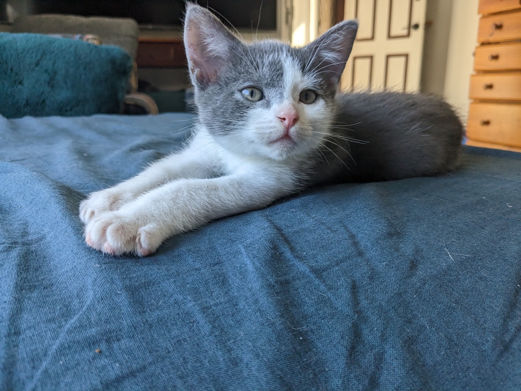 Being more independent I would be okay in a home with no other pets, but I do love playing with my siblings so a furry friend would be great too! I haven't met kids or dogs, but with slow introductions I'm sure I'll be just fine.