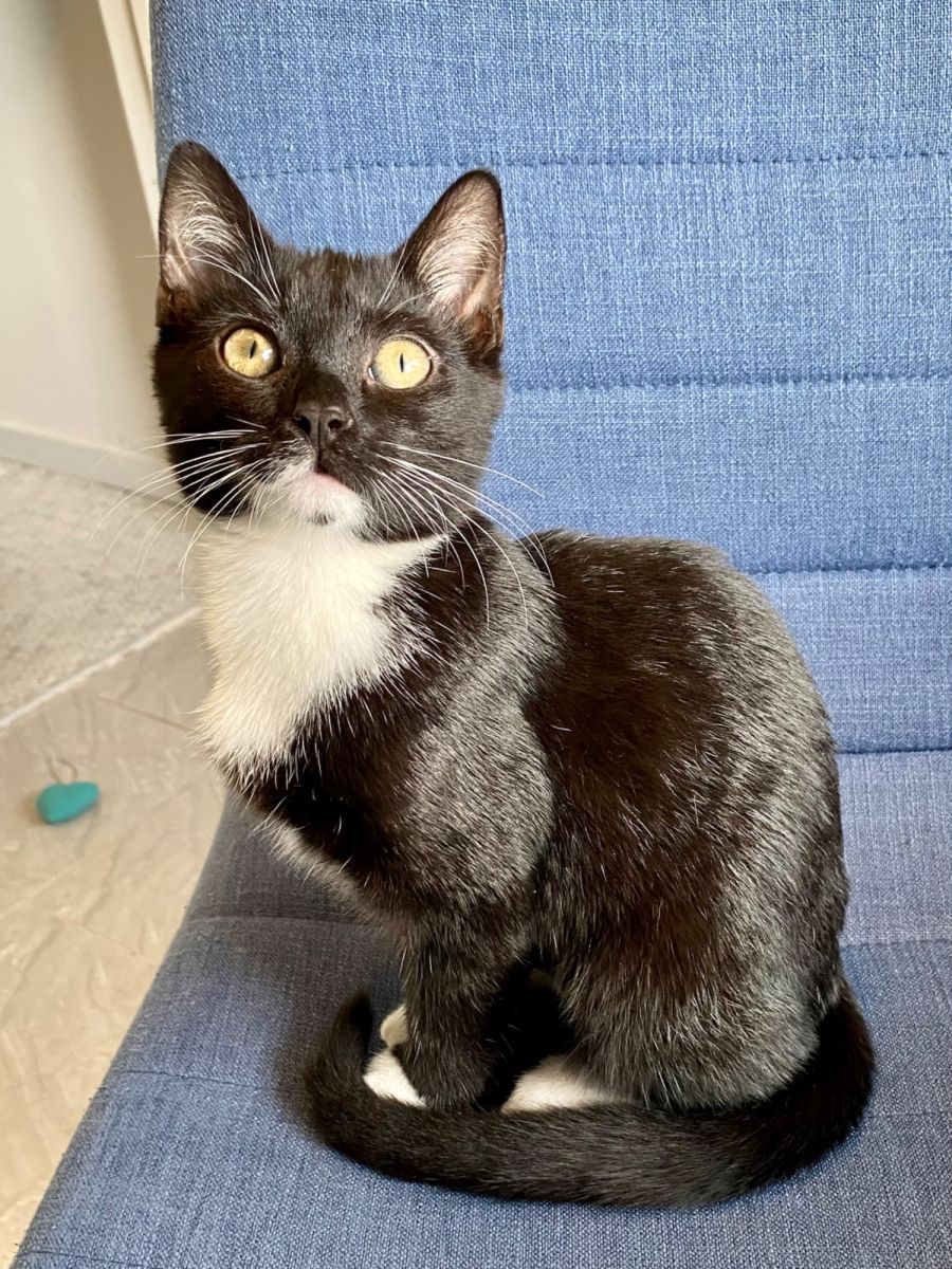 We rescued her from the street when she was about 3-weeks-old, bottle feeding her until she was ready to eat wet food, and then when we was old enough, 3x core vaccines, microchip, and desexing. She is very ready for adoption.